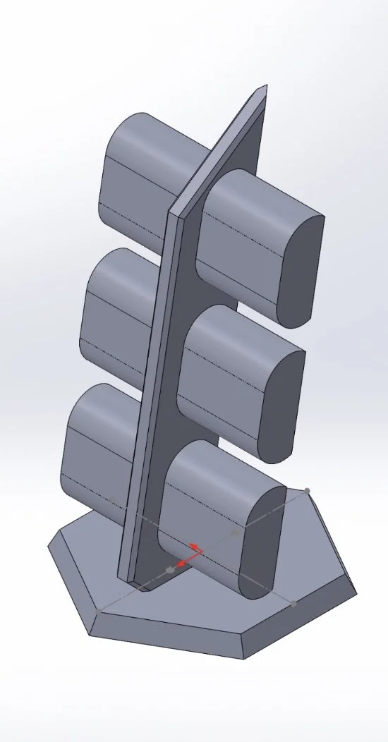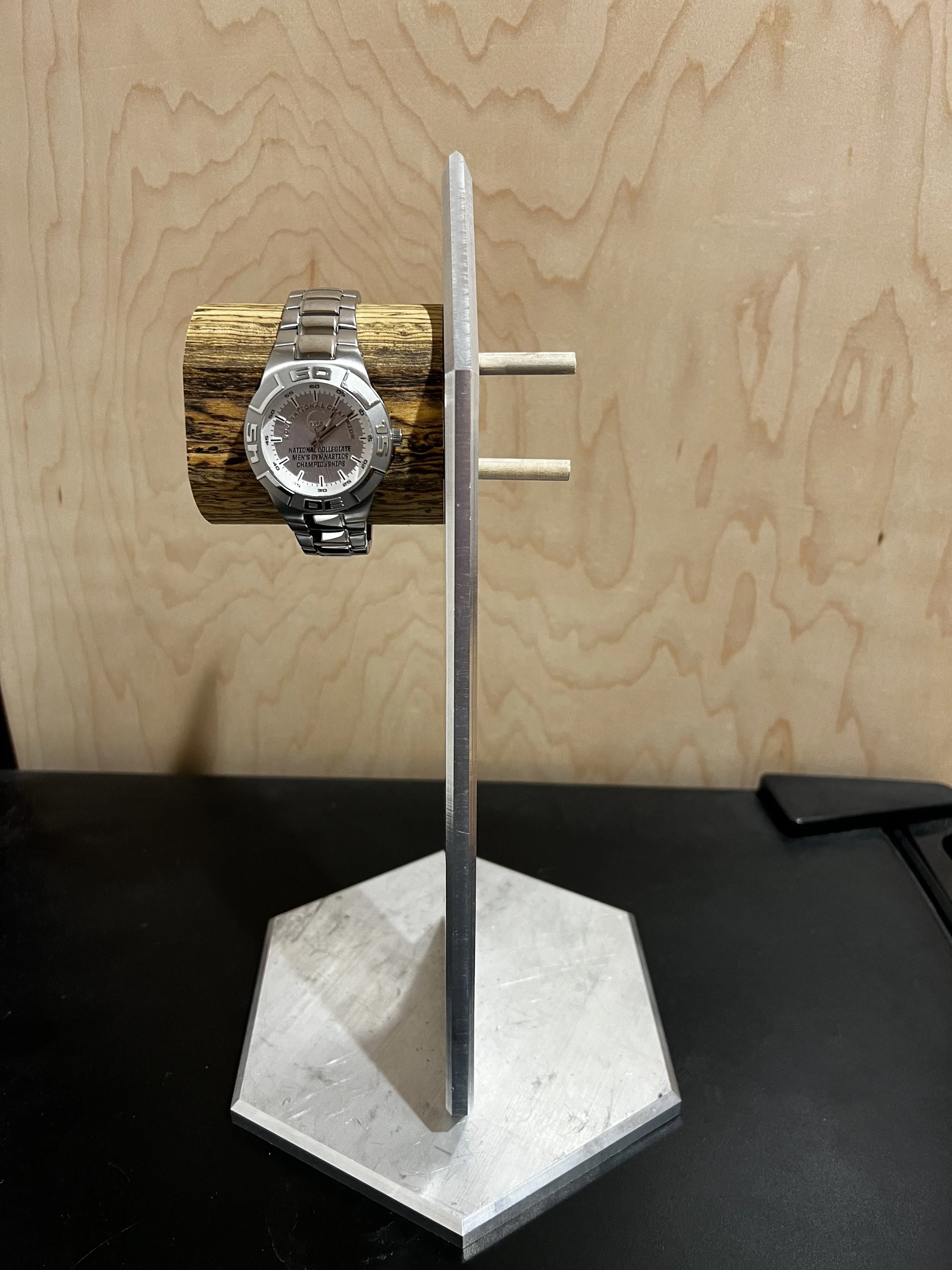 Objective: To create a way to hold and display one’s watches in a safe and stylish manner. As a personal touch, my goal was to juxtapose the warmth and elegance represented by dark wood with the cool toned boldness of the aluminum. In doing so creating a resilient product that is functional, sturdy, and striking.