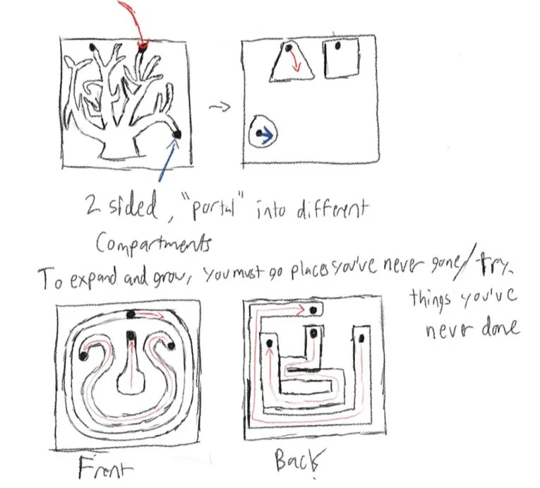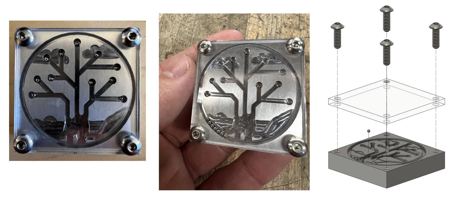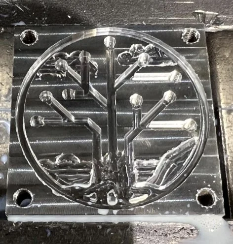 Prompt: Using a 2x2x0.5” block of aluminum, design and CNC a minimaze using the prompt: