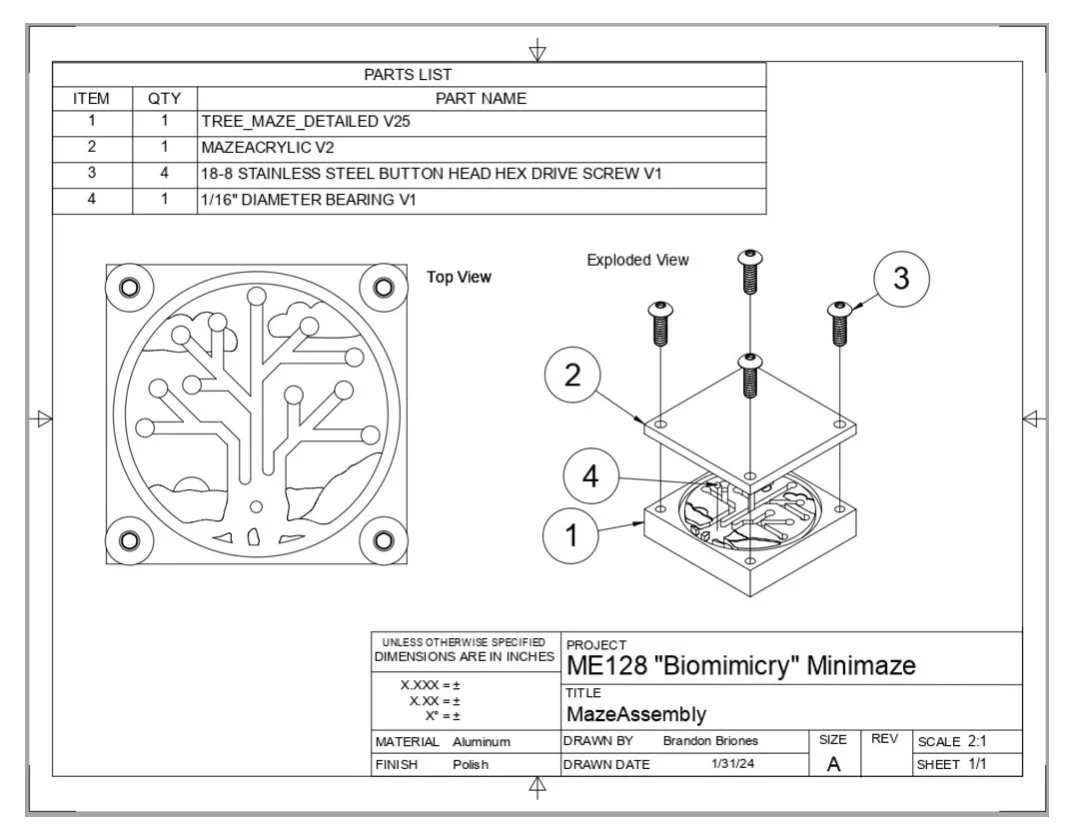 Overall the design turned out as well as expected and needed minimal post-machining. I included 11 bearings in the maze, establishing the challenge of getting a bearing in each tree node