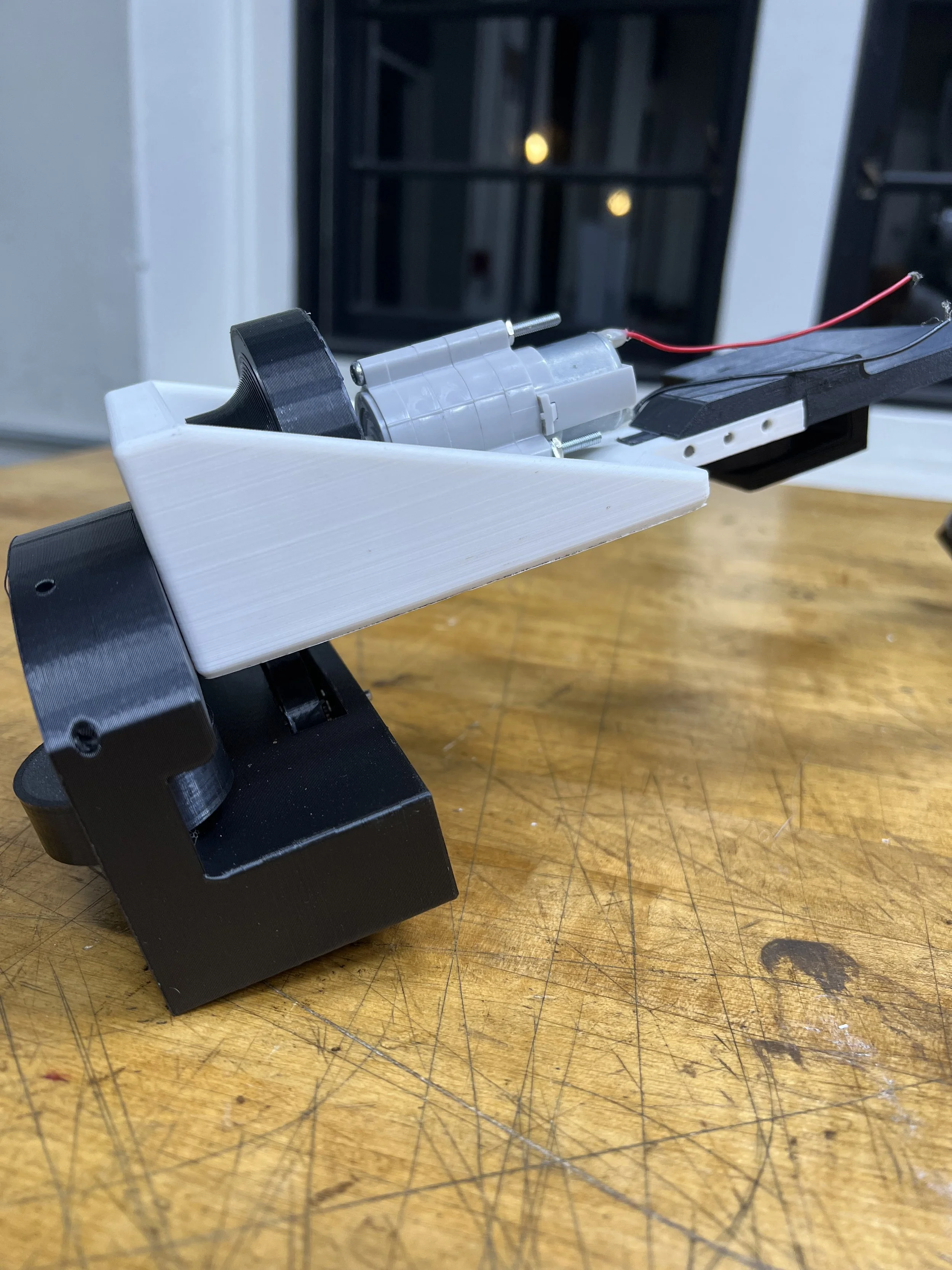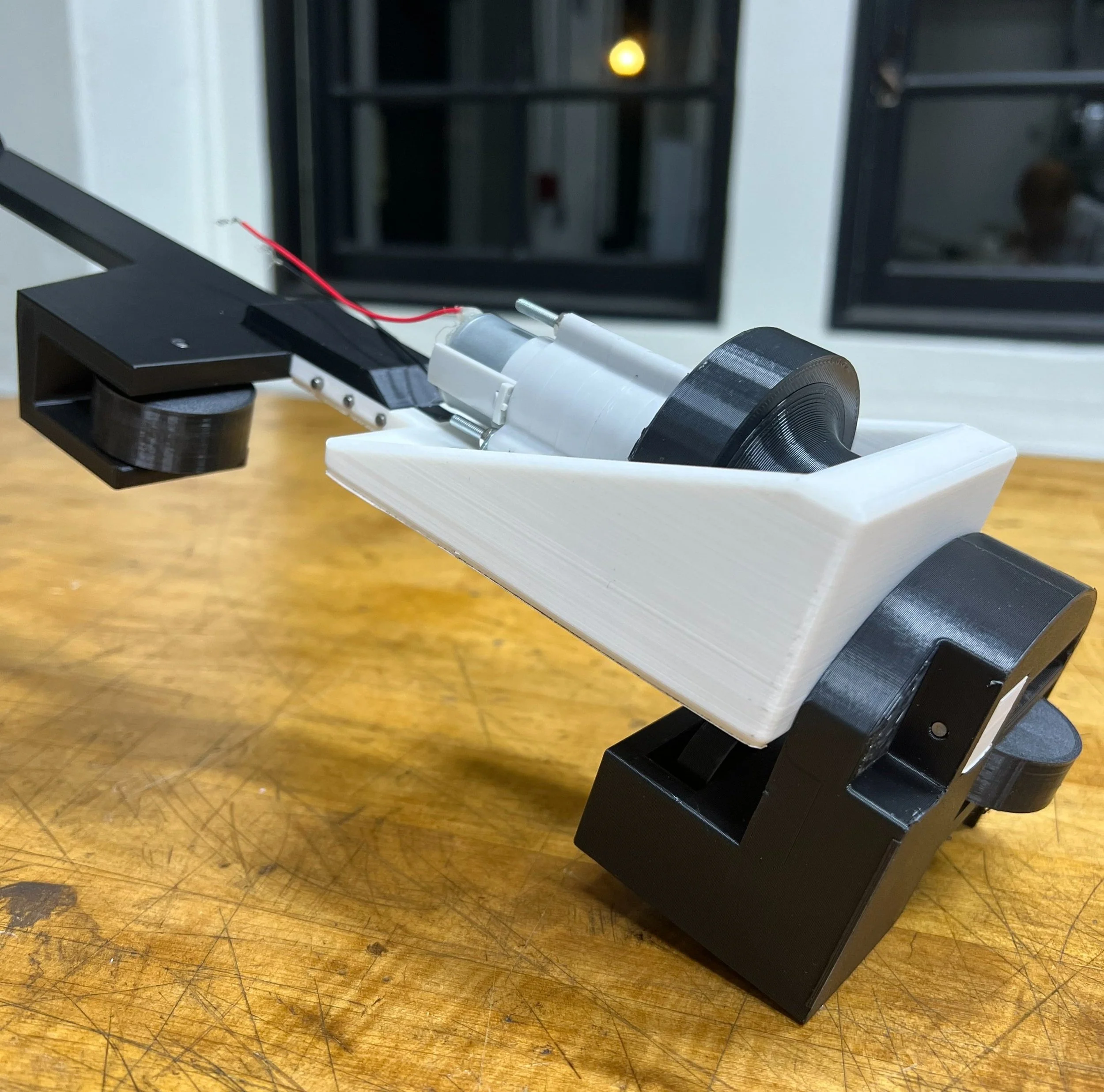 For this project, we were tasked to design and build a small robot to climb an I-beam as fast as possible while carrying a payload at a specified distance and orientation to the beam. We were allowed to use a small DC motor, and some small shafts and bearings. All other pieces would have to be 3D printed out of PLA. Our team used FBD analysis, motor analysis, concept generation, and empirical testing to create a mass-efficient design of assemblies of custom parts.