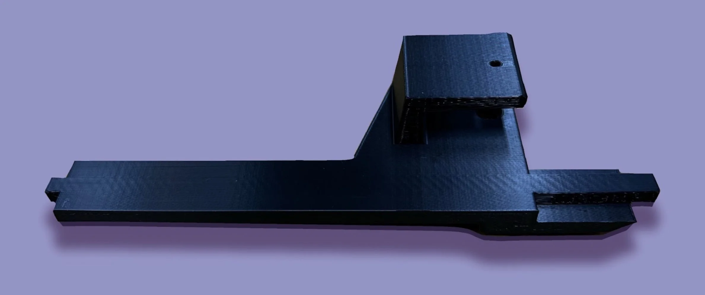 Stress analysis and FEA were used to determine the dimensions of the top and side beam to prevent breaking, reduce deflection, and increase mass efficiency. To reduce beam deflection, the thickness was increased above and around the connection between the top beam and the chassis. The side beam was designed to hang vertically to the ground to eliminate torsion on the connection point between the top and side beam, with a “cradle” attachment to keep the payload in the specified orientation. The cradle was positioned outside of the vertical beam to reduce the maximum applied moment. Fixed connections between the side beam, top beam, chassis, and side housing were created using square pegs and pin connections in order to constrain against all degrees of freedom.